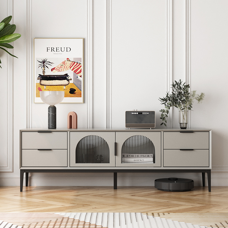 Italian Solid Wood Rock Plate TV Cabinet Modern Light Lavish Nordic Net Red Small Family Type Extremely Minimalist Living-room Terrace Tea Table Combination