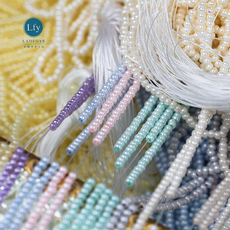 (Macaron Cream Porcelain Beads) French Embroidery Baby Clothing Accessories Czech Imported 2mm Rice Beads 50cm String