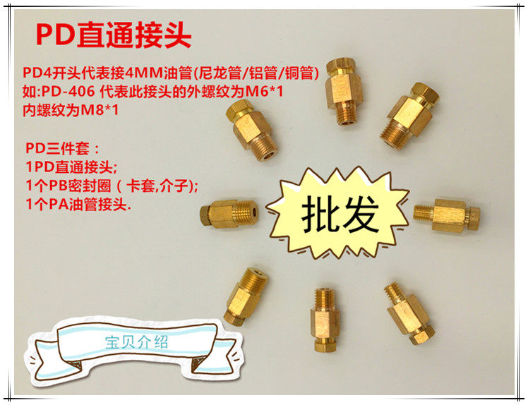 PD tubing straight-through joint nylon tubing aluminium pipe copper joint machine tool lube pipe threaded joints oil road fittings