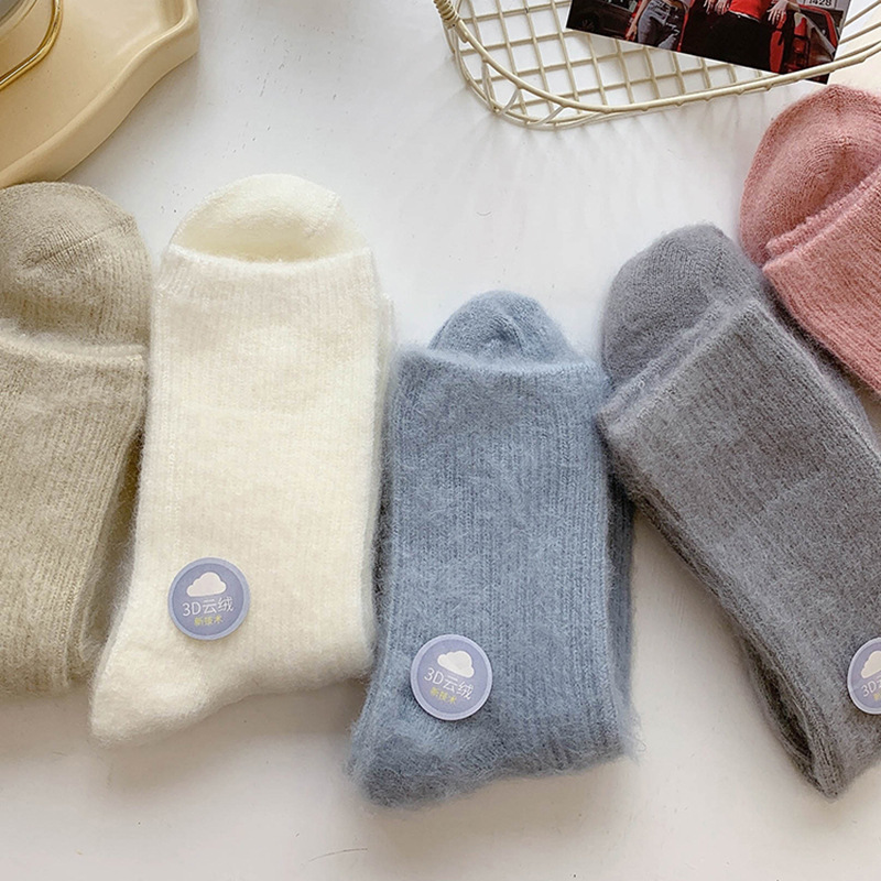 Plush Stockings Children's Autumn Winter Thickening of Socks Pure Color Plus Fluff Hair Winter Bubble Socks Chains