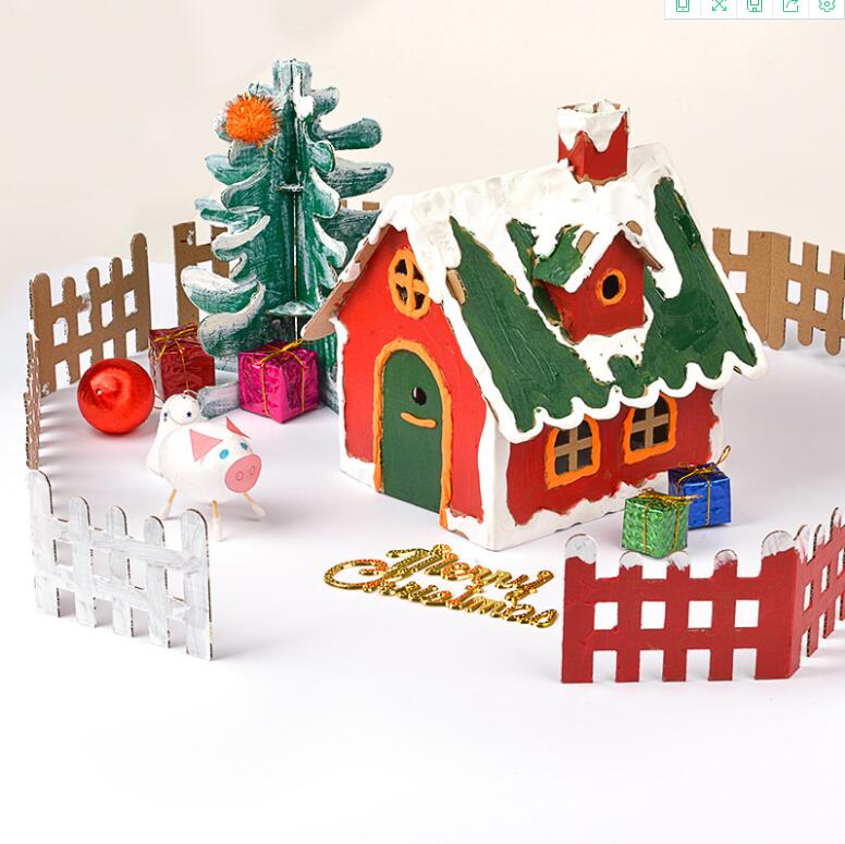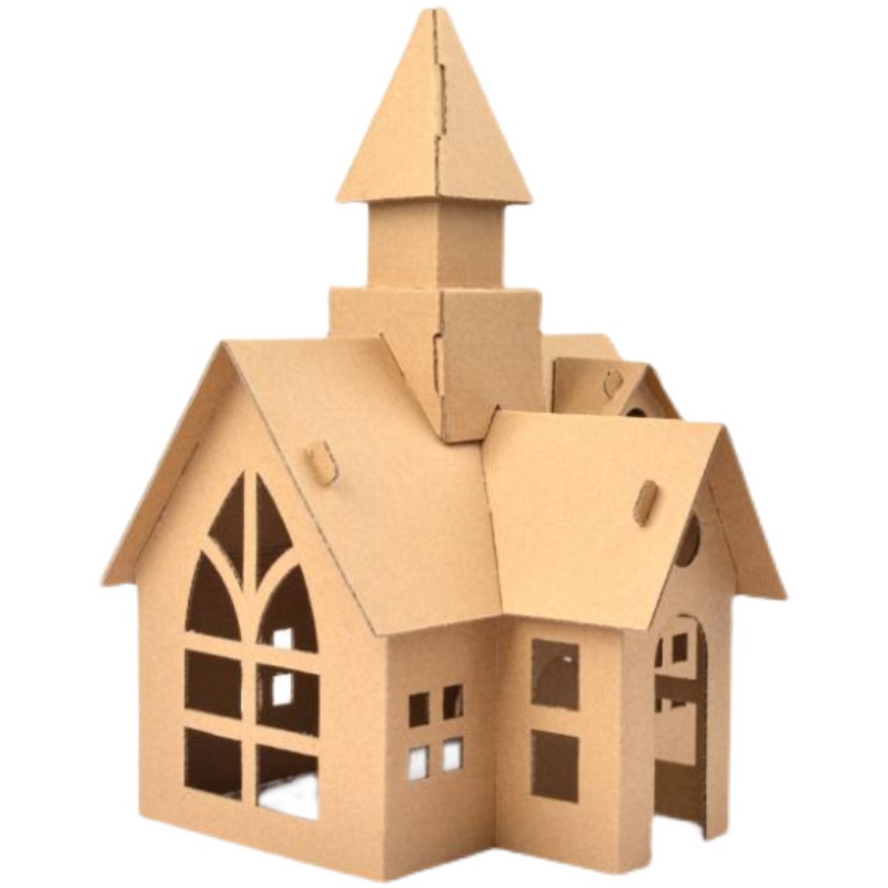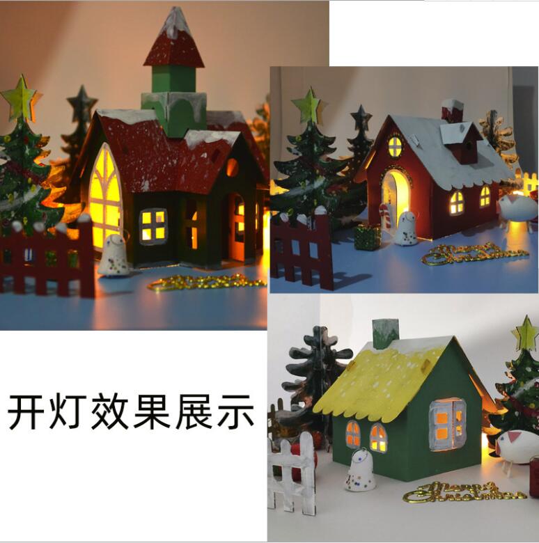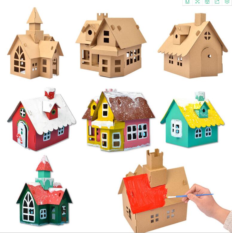 Children Handmade House Diy Decorated Cardboard Small Paper House Assembled Toy Nursery Painted Cardboard Box Building Model