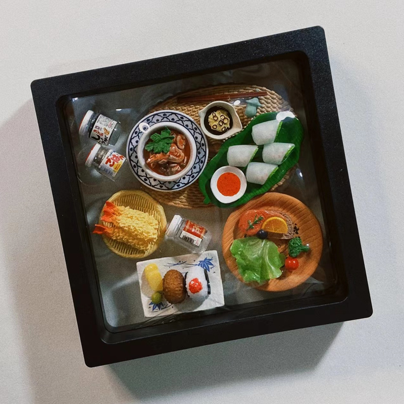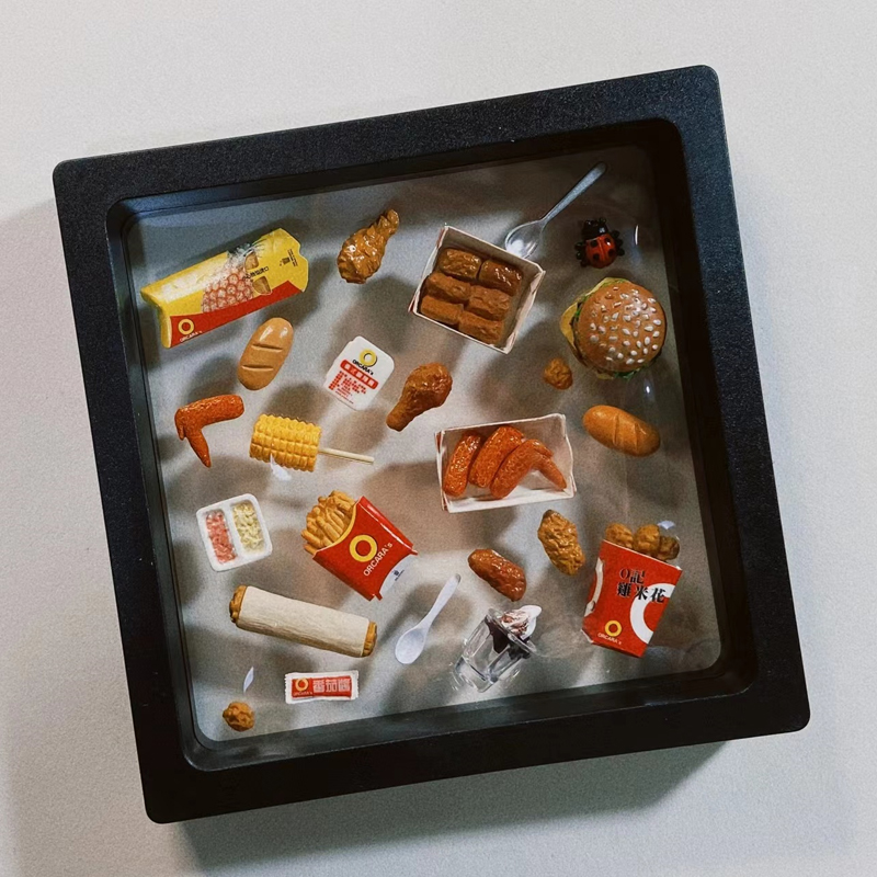 Food Play Display Case Transparent Plastic Dust-Proof Blind Box Model Bubble Mater Toy Display Photo Frame Building view containing shelf