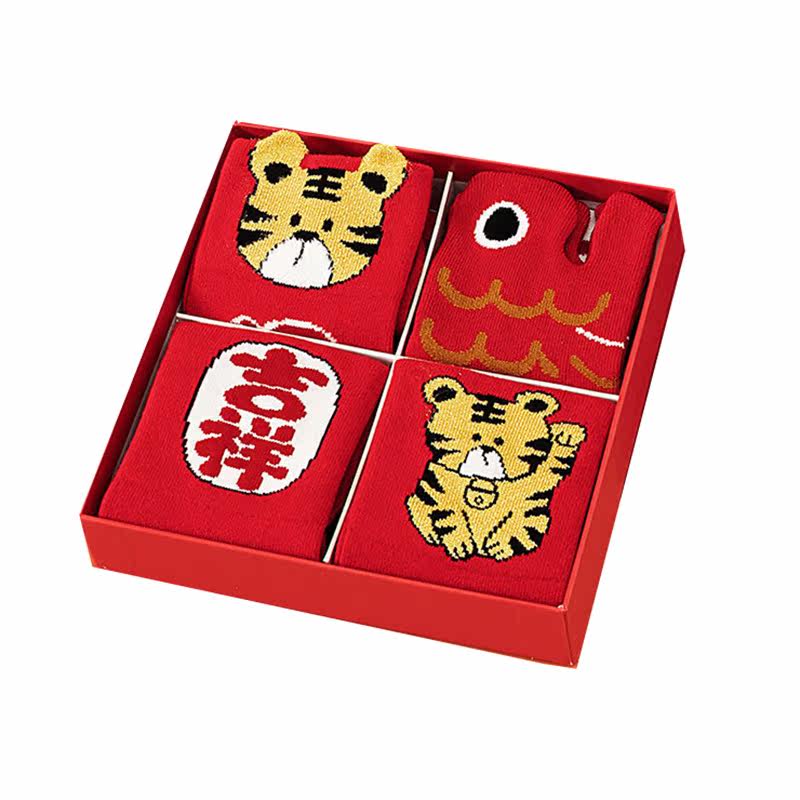 4 pairs of gift boxed New Year's red socks women's mid-tube socks winter women's trendy socks thickened sweet socks Tiger year of the year of life socks