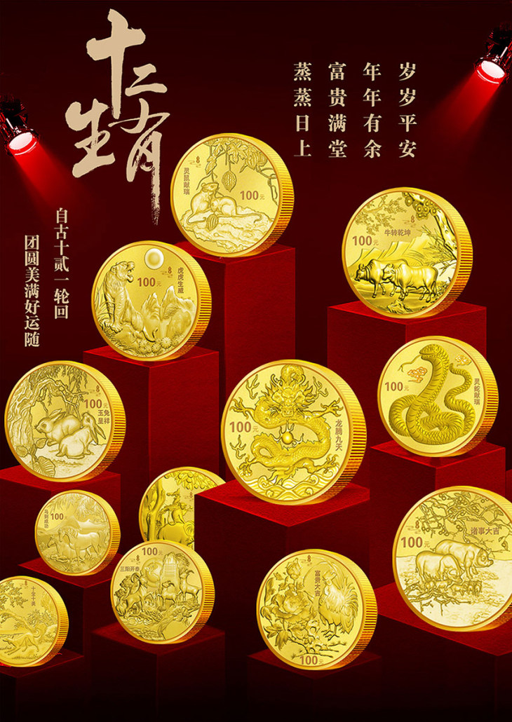 Lunar New Year's commemorative coin XII Zodiac commemorative gold coin set box gift set group 1200 and other face value exchange