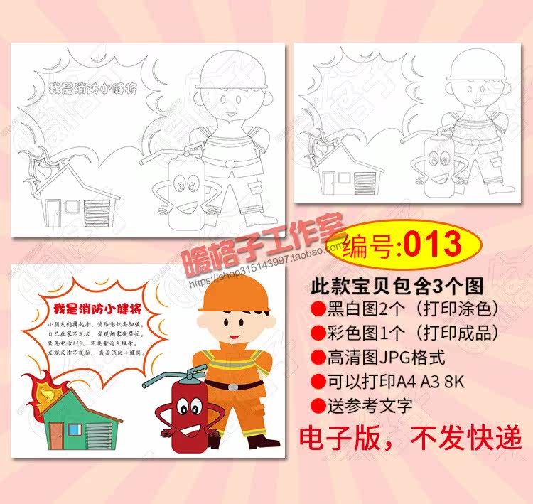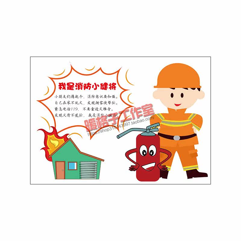 Small Firefighter Manual Code Template Kindergarten School Fire Safety Knowledge Color Line Electronic Edition