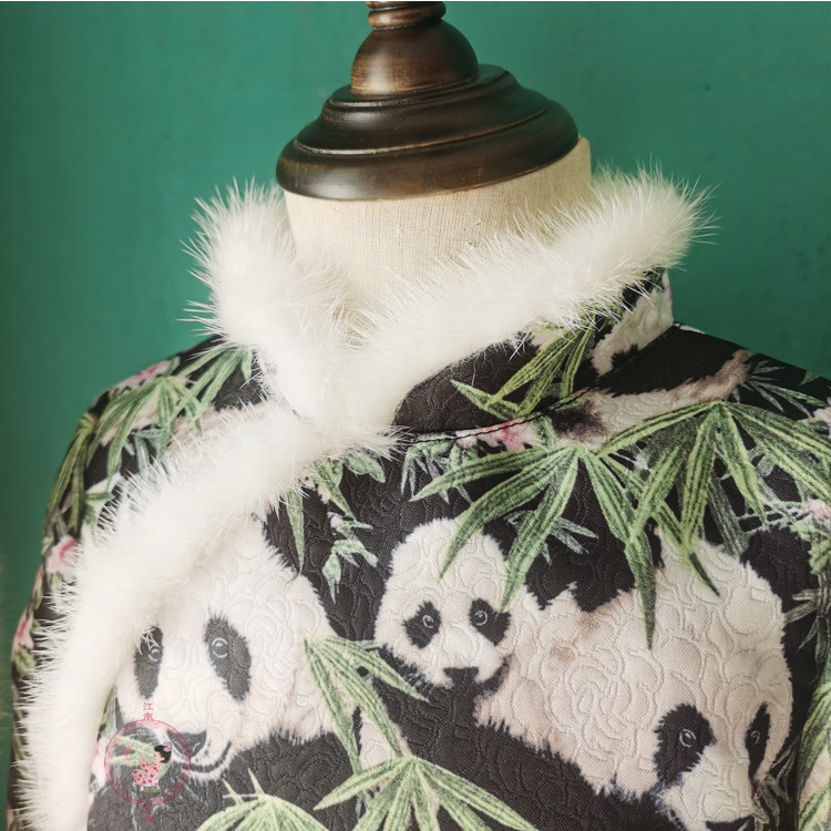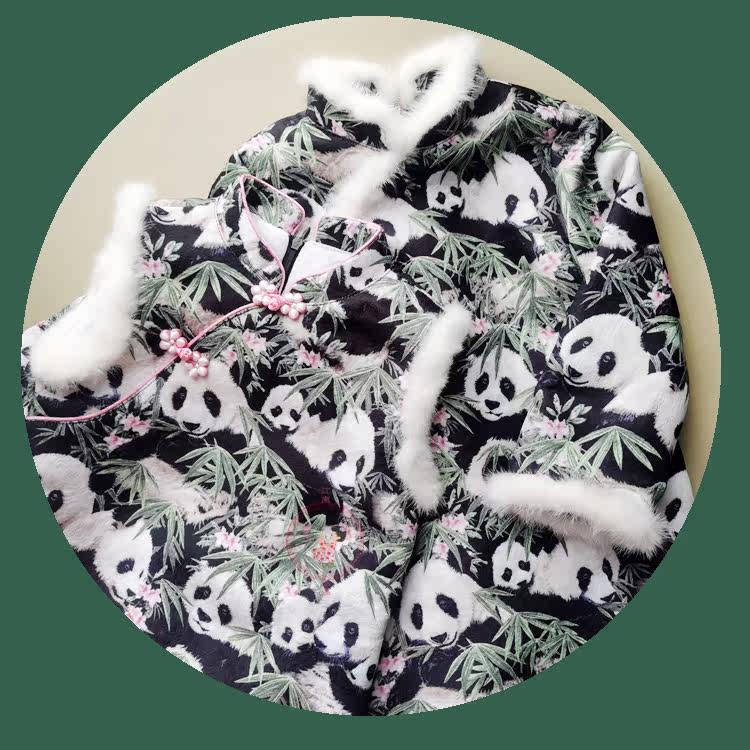 Parent-child National Breezy Qipao Panda Jacquard Clip Cotton Child Cotton Padded Jacket MaMom Long Sleeve Dresses Dress For the Year of the Year