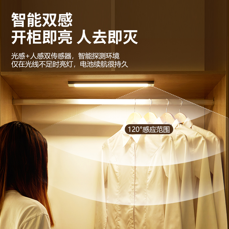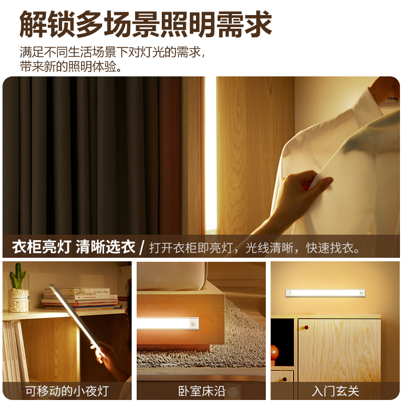 (Light feeling, human feeling) 40cm warm white light charging induction wardrobe light