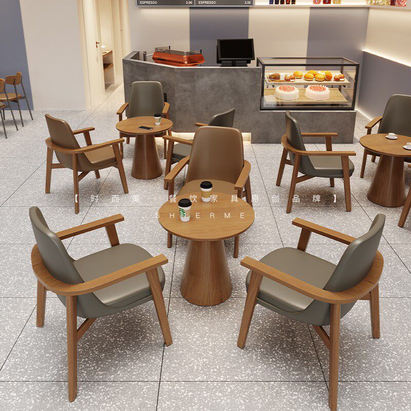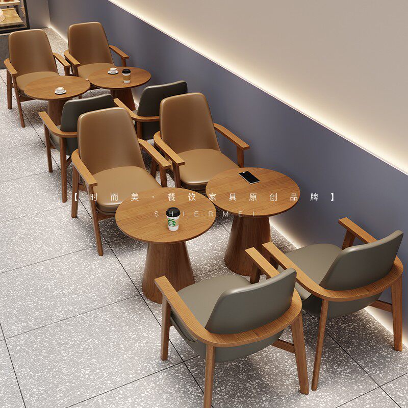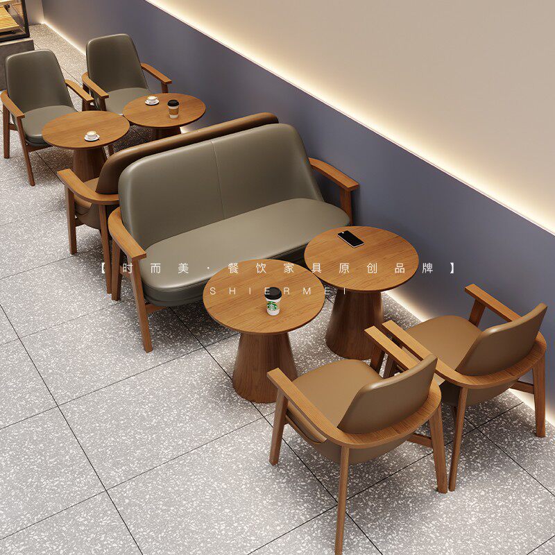 Walnuts Round Tea Table Hu Peach Color Long Tea Table Brown Single Armchair Grey Single Armchair Brown Double Armchair Grey Double Armchair Brown Round Stool Grey Round Stool Custom Special Pat