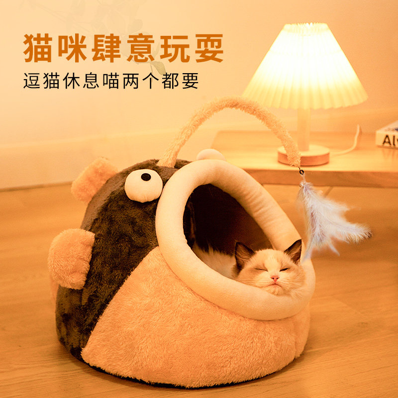 Cat Nest Winter Warm Young Cat All Season Universal Kitty Supplies Semi-Enclosed Cat House Can Be Unwashed Teddy Pooch Nest