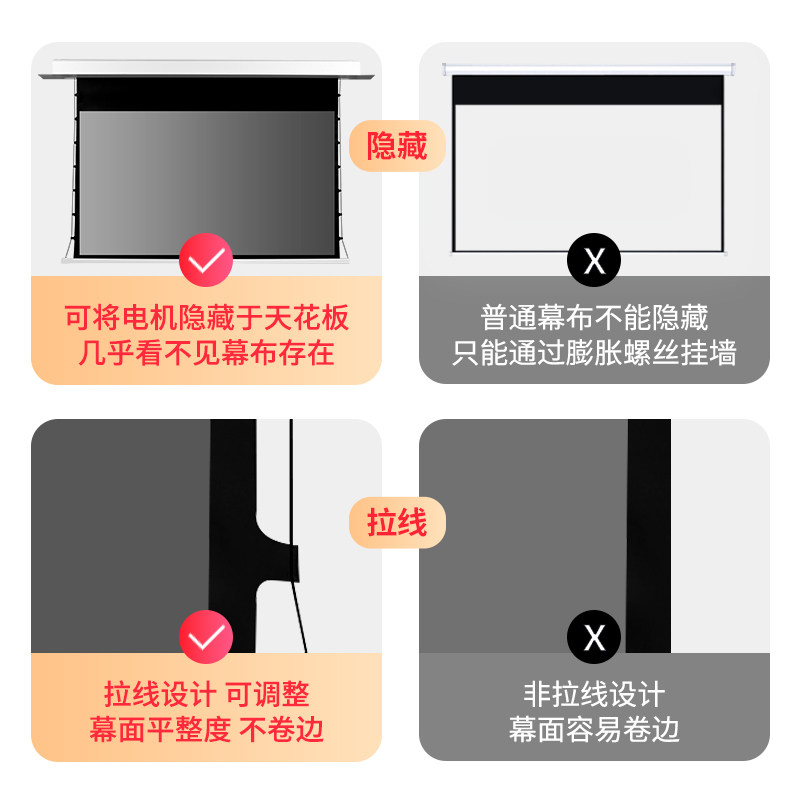 Whale Mi Embedded Smallpox Curtain Cloth Pull Wire Projection Curtain High Definition Electric Remote Control Intelligent Voice Lifting Concealed Living Room Cinema 100 Inch 120 Inch Glass Fiber Metal Anti-Light Projector Screen
