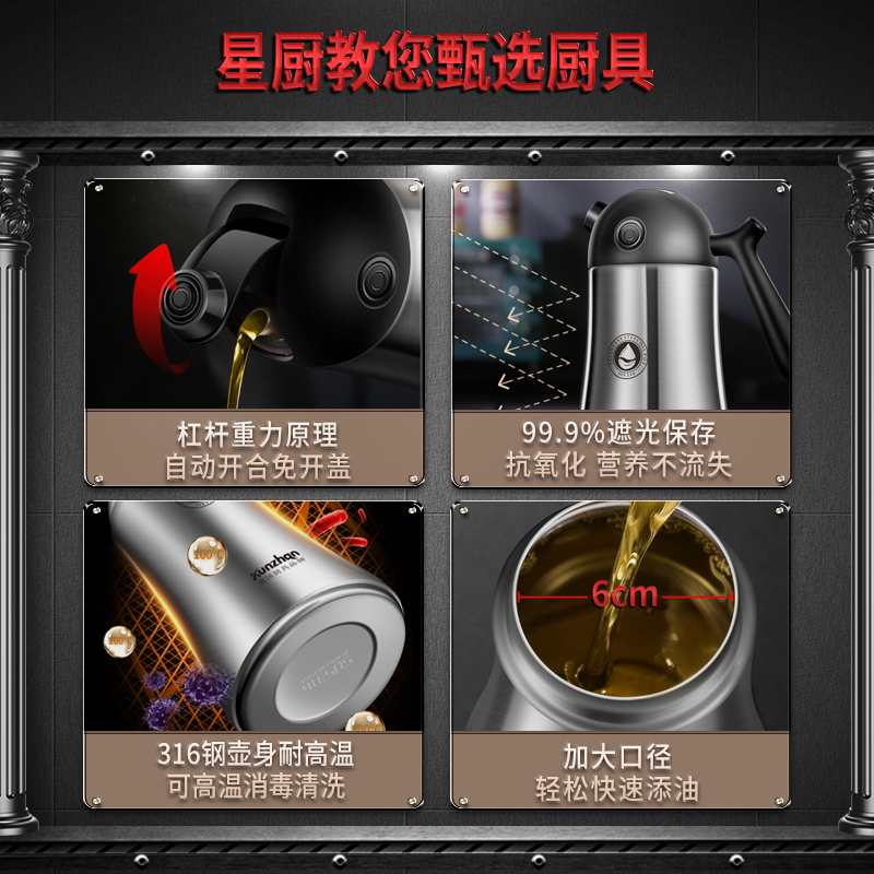 316 stainless steel oil pot automatic opening and closing oil bottle Home Kitchen Soy Sauce Vinegar Vinegar Sauce without hanging oil cooking oil
