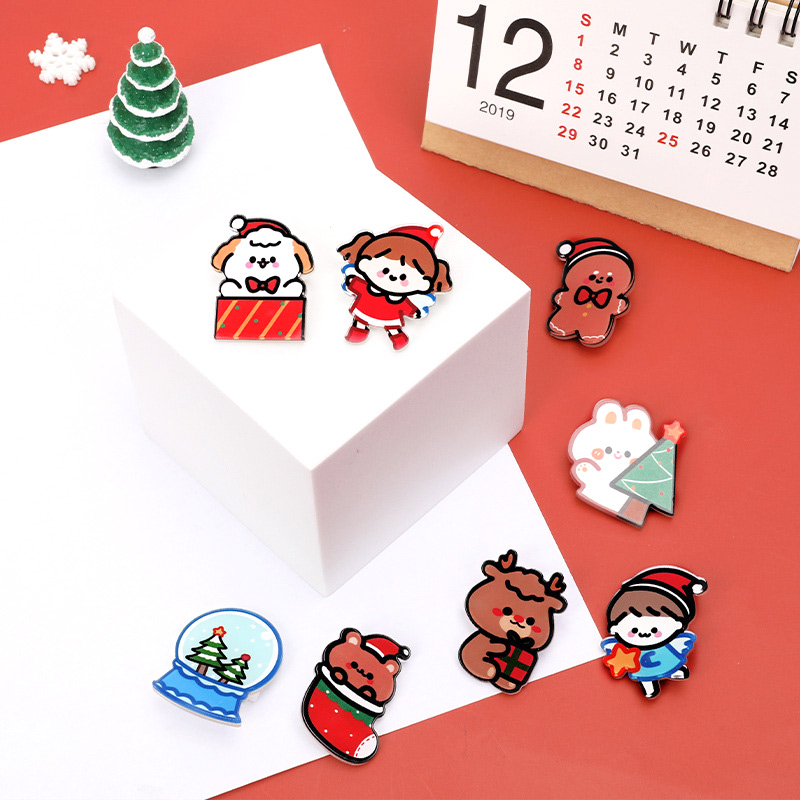 Creativity Yer Christmas Small Gift Children Hanging Accessories Cartoon Brooch Decorations Elementary Students Kindergarten Class Reward Gift