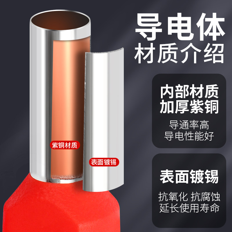 TE Twin-line tube type cold-pressed terminal joint plug-pin-ear connector needle-type copper tube nose