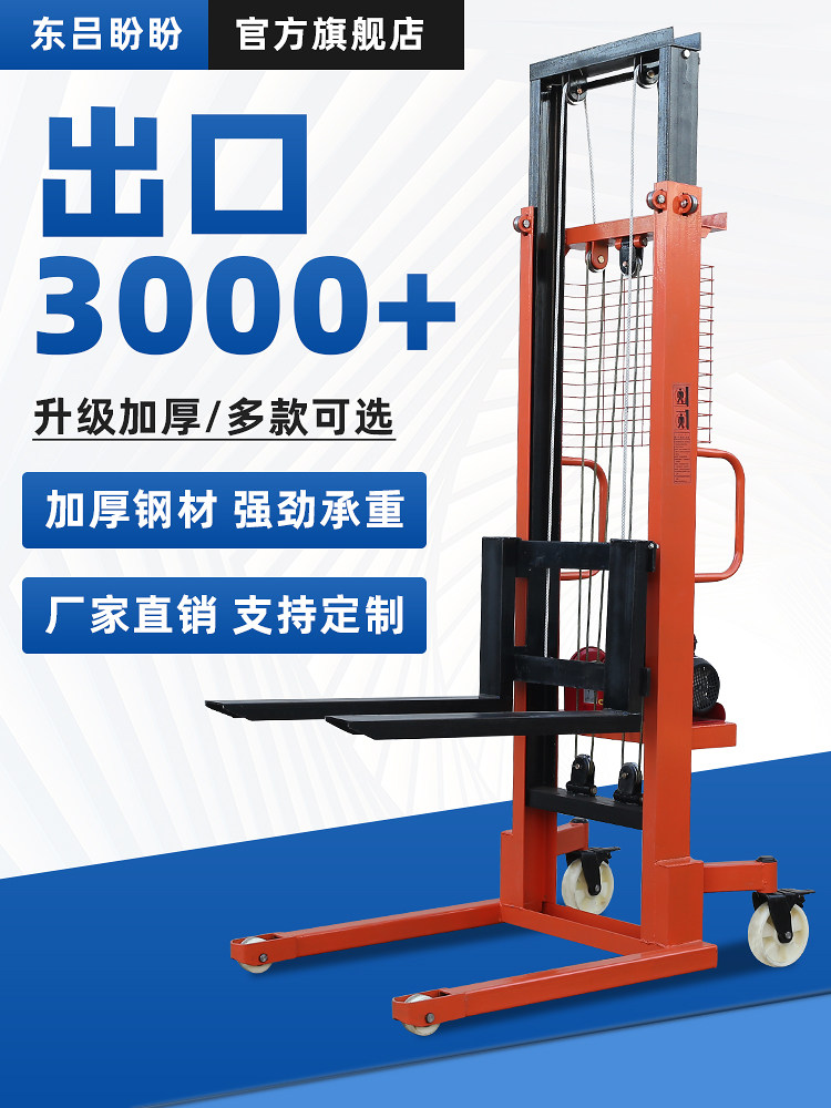 Donglu Panpan small electric forklift lift 1 ton 2 ton manual hydraulic truck stacking truck four-wheeled ground cattle