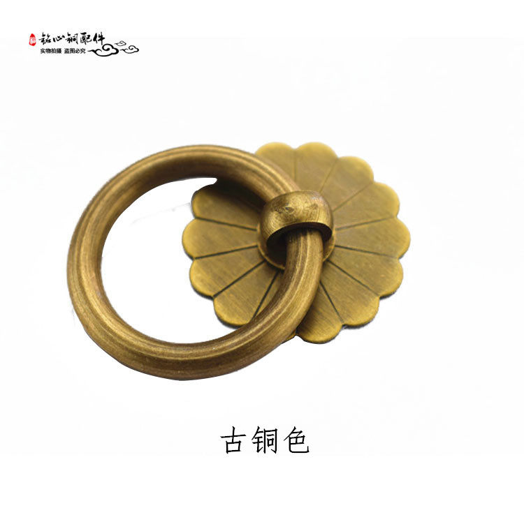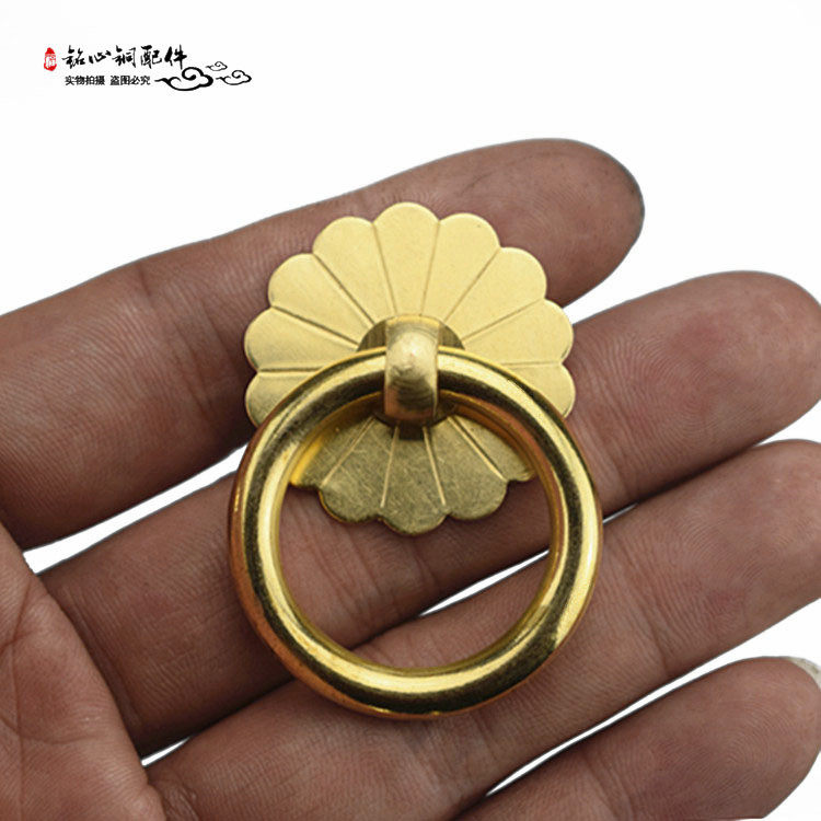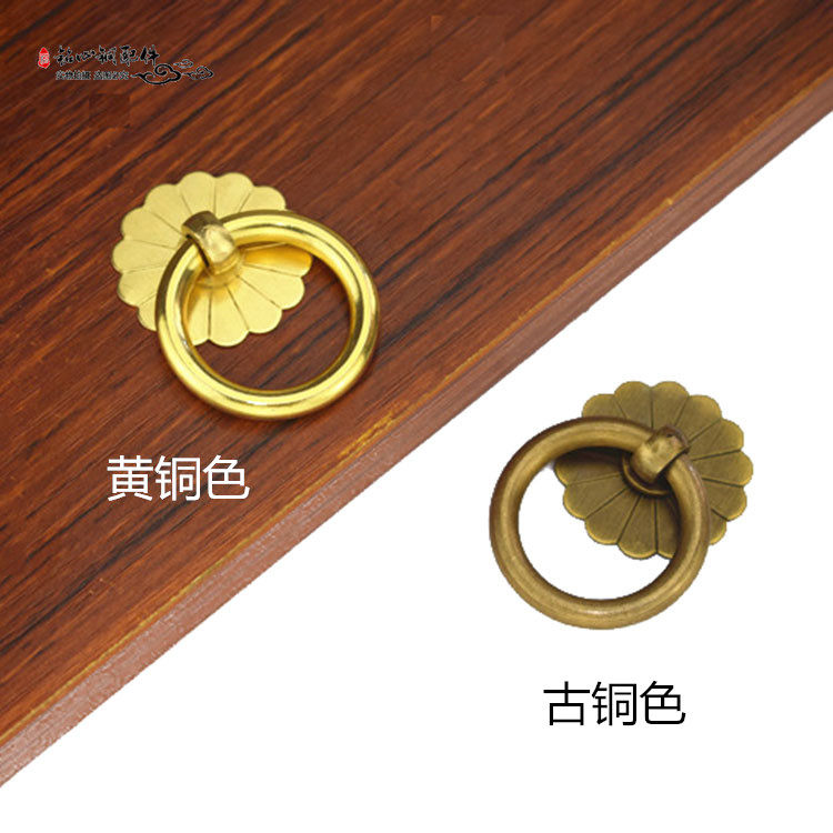 Chinese antique pure copper handle shoe cabinet door ring overall cabinet simple copper ring traditional Chinese medicine cabinet classical drawer handle pull ring