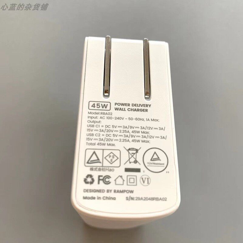 RAMPOW charger PD45 tile double C mouth suitable for Apple 12 13ipad macbook pro fast filling head