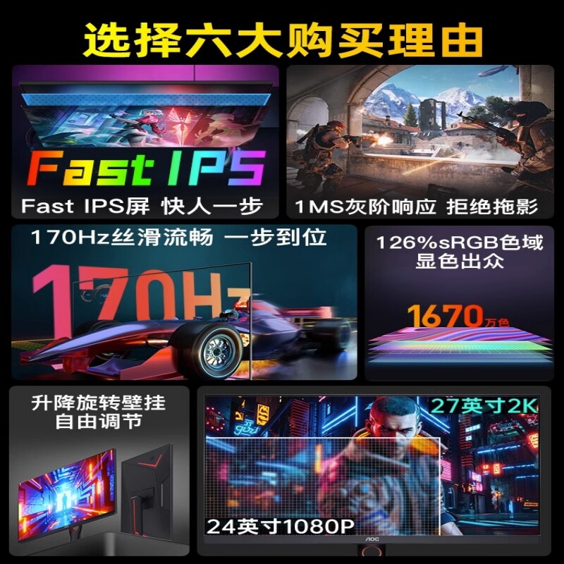 AOCQ27G3S electric race 27 inch HD 2K Display 170Hz Screen IPS LCD desktop computer 144hz-Taobao
