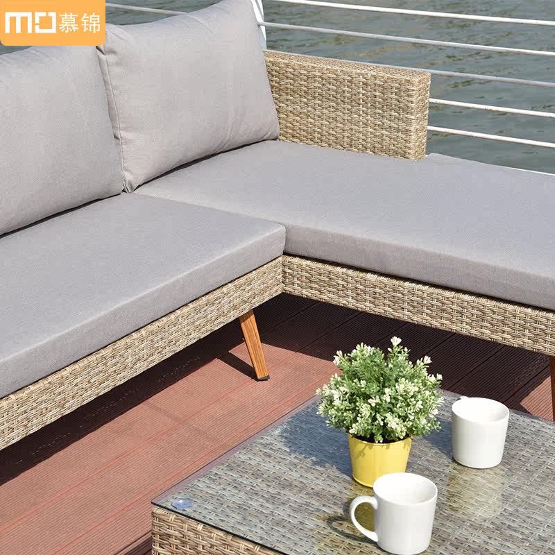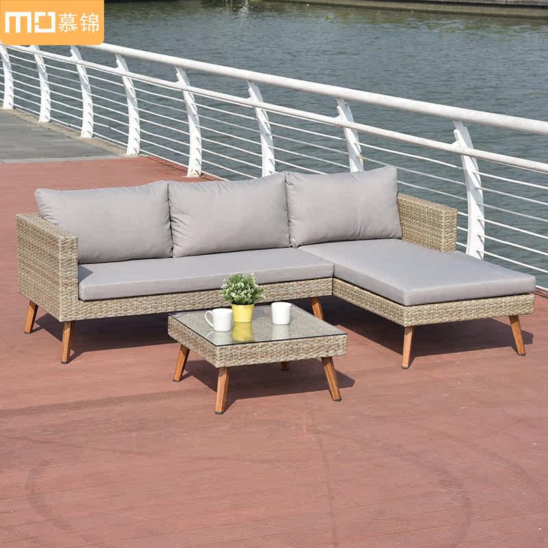 Outdoor sofa homestay courtyard garden terrace waterproof sunscreen lazy leisure small apartment imitation wood L-shaped sofa set