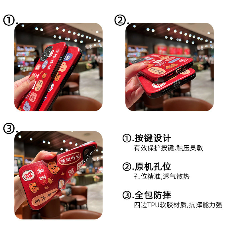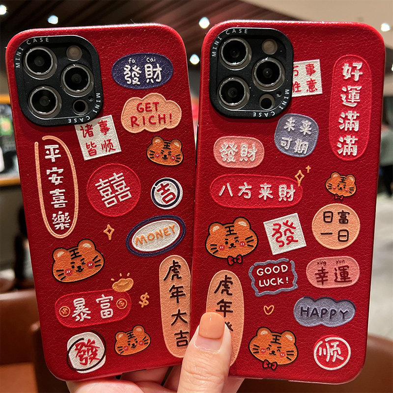 Tiger New Year Rich Dazzling Cell Phone Case for iPhone 13 Apple 12 Silicone Cover 12promax Soft 11 Women Xsmax Couple X XS Red Cartoon XR Relief 7