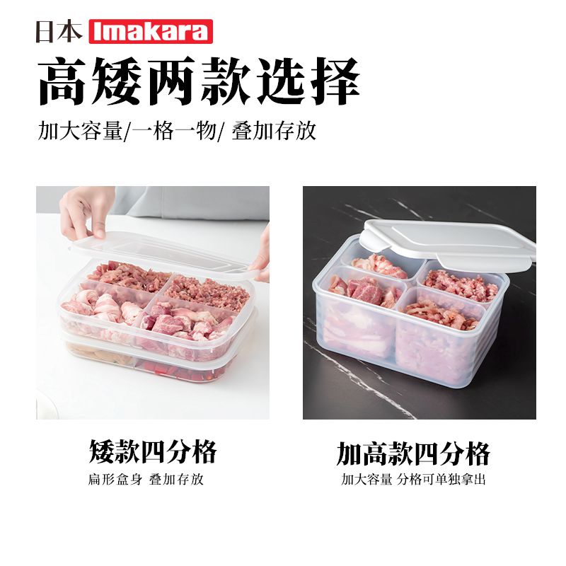Japan Imakara Four Compartment Refreshing Box Food Grade Kitchen Fridge Frozen Meat Containing Box Food Split Frozen