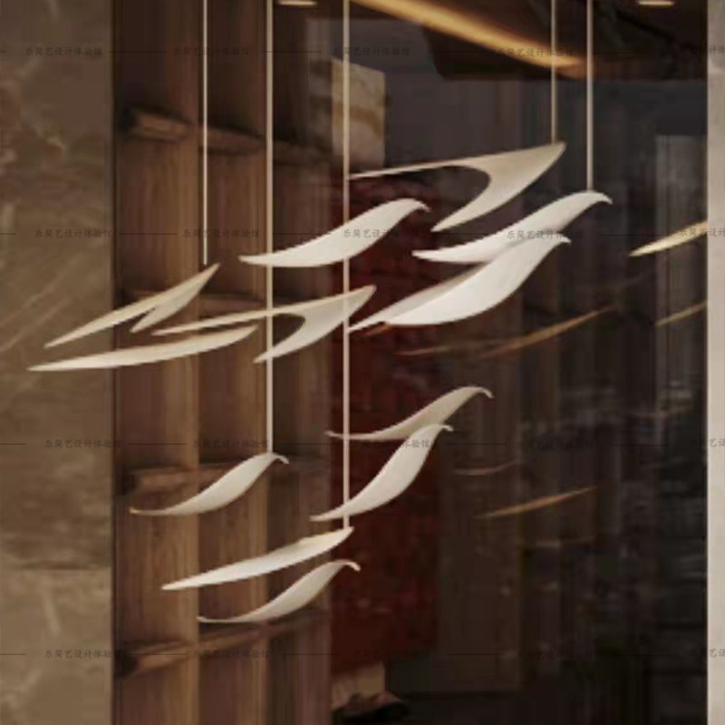Hotel lobby air hanging club art exhibition hall sample house exhibition center project soft decoration flying bird acrylic decorative hanging