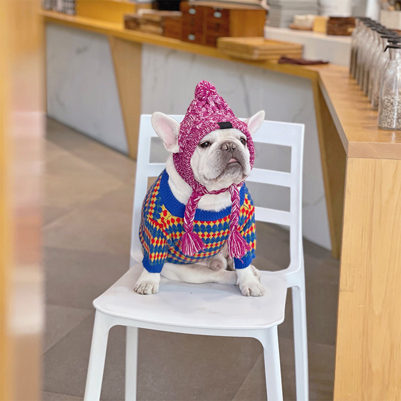 Dog hat Fadou golden retriever bichon wool hat winter cute warm pug braid hat