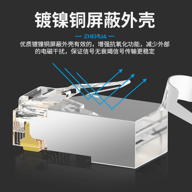 50U seven types of network crystal head CAT7 gold-plated RJ45 network line connector pure copper shielded connector 10 Gigabit
