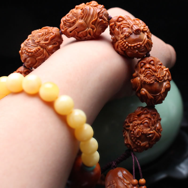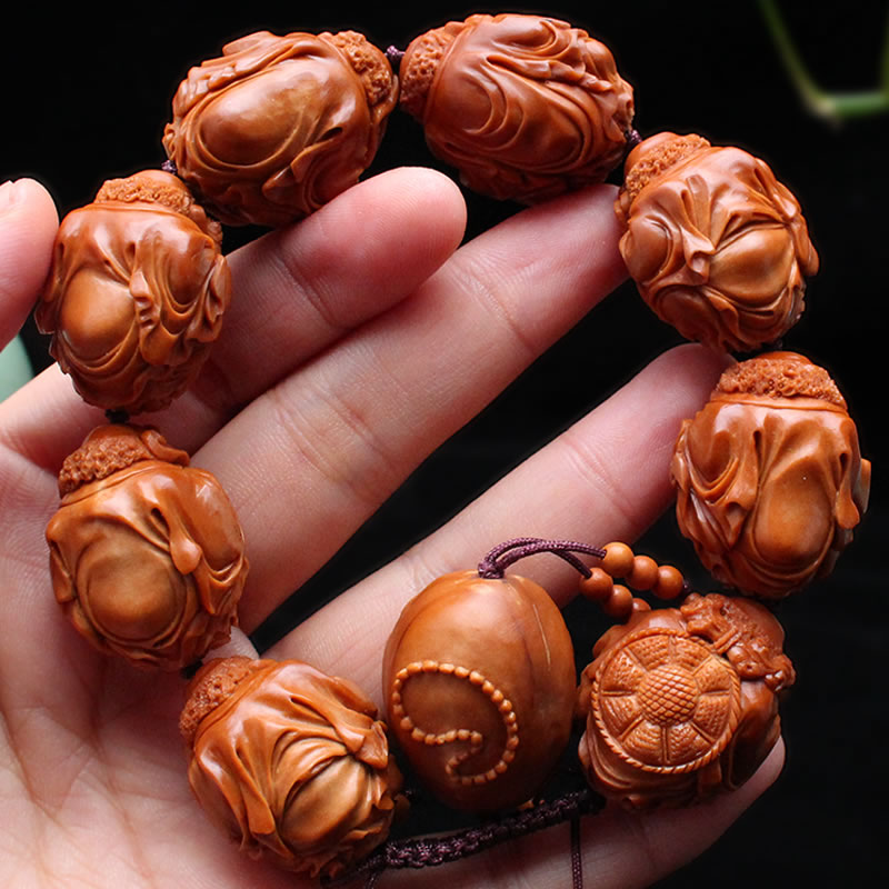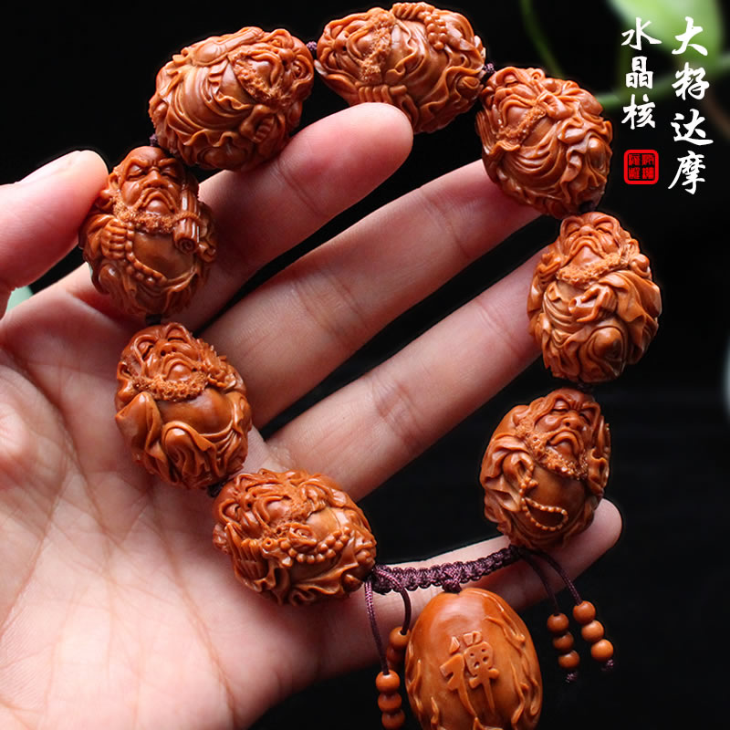 Su Gong Jian Jia olive kernel carving pure hand engraved large seed crystal nuclear Damo ancestor style 8 olive beard bracelet men