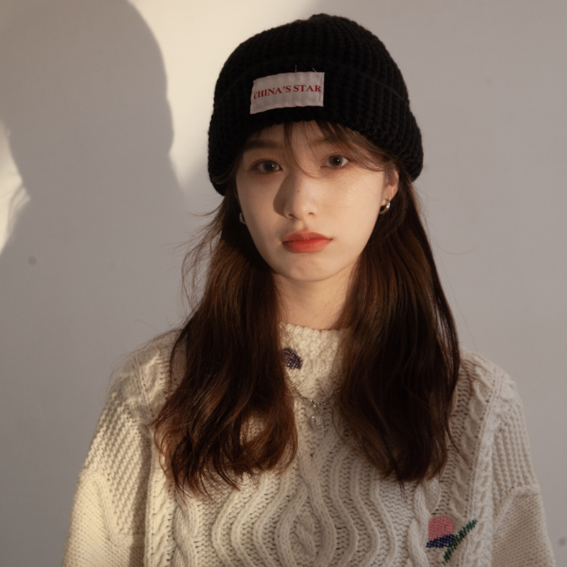 Civen & Kivan Alphabet Cloth Stickup Hair Line Hat Lady Autumn Winter 100 Lap Net Red Days Warm Cold Hat Knit Hat