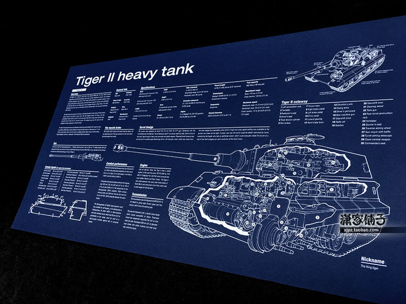 World War II German Tiger Heavy Tank Tiger II Structure Drawing Blueprint Hanging Poster Decorative Painting