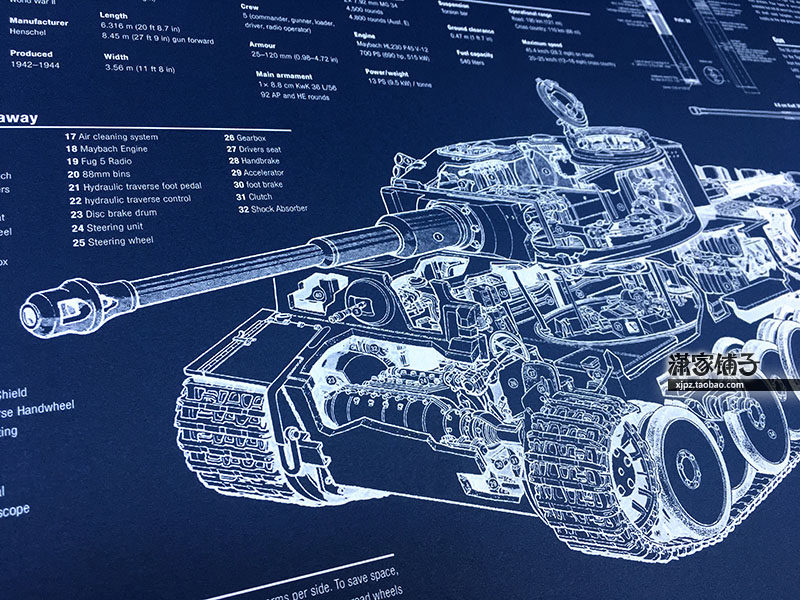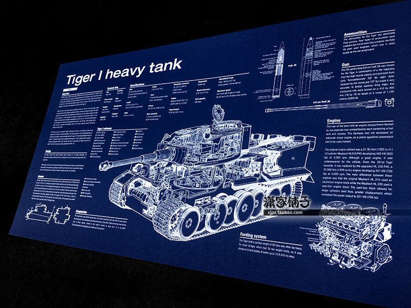 World War II German Tiger Heavy Tank Tiger I Structure Drawing Blueprint Poster Decorative Painting