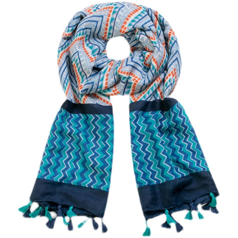 Guangxi ethnic style Zhuang brocade water wave pattern long scarf shawl fringed silk scarf special clothing gifts