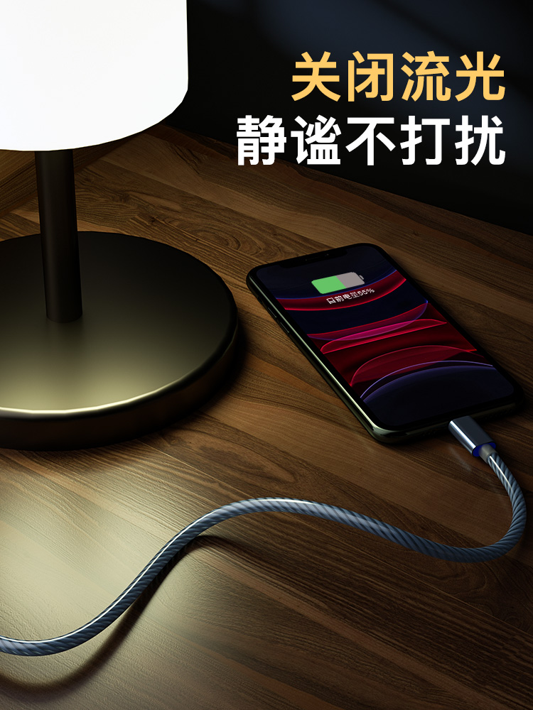 Trembling streaming light data line net red Seven color luminous charging line Fast charging applicable iPhone mobile phone horse race light Apple type-c Android Vivo Huawei oppo Xiaomi On-board Flash magnetic suction line