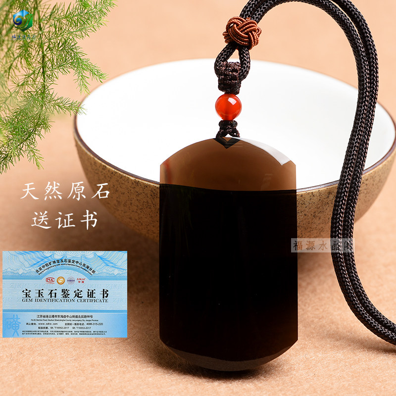 Natural Black Crystal Safe With No Sign Pendant Male Moisturizing National Wind Ridge Mantra Mantra Tea Crystal Necklace Lovers Original Stone Pendant Woman