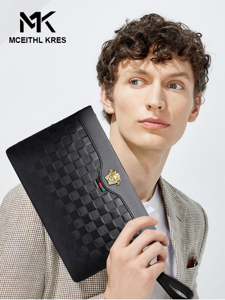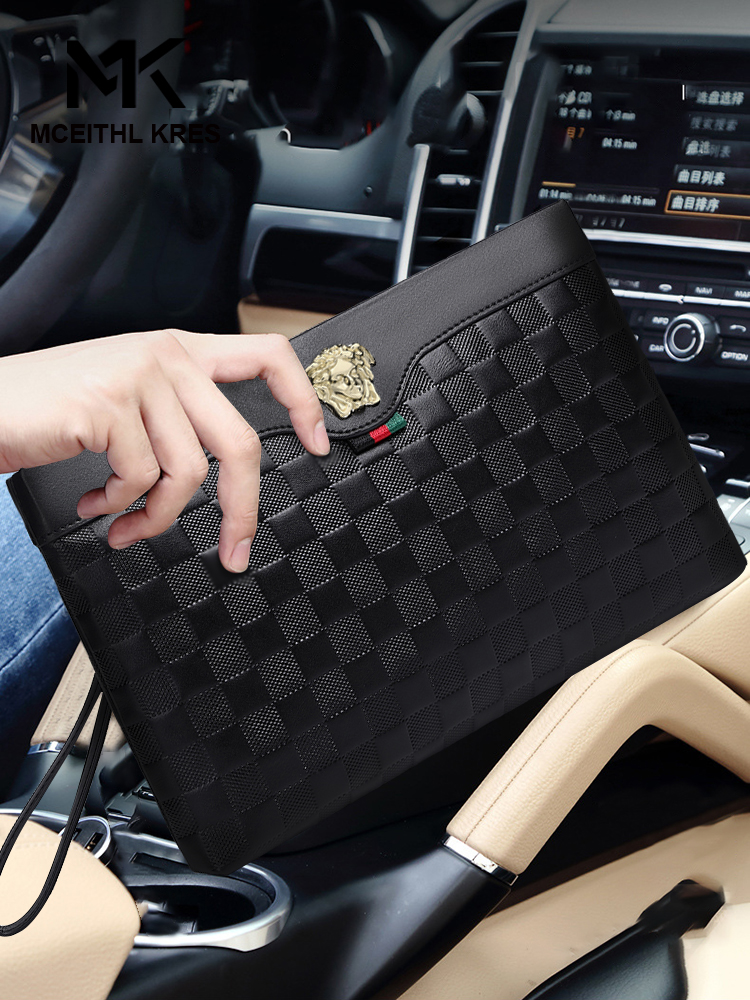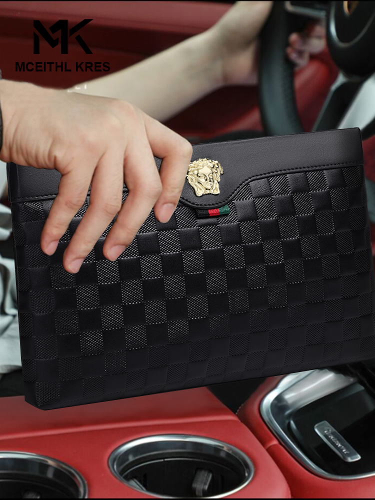 MK New Men Handbag Furniture Leather Wash Envelope Handbag Casual Brand Large Capacity Handbag Man
