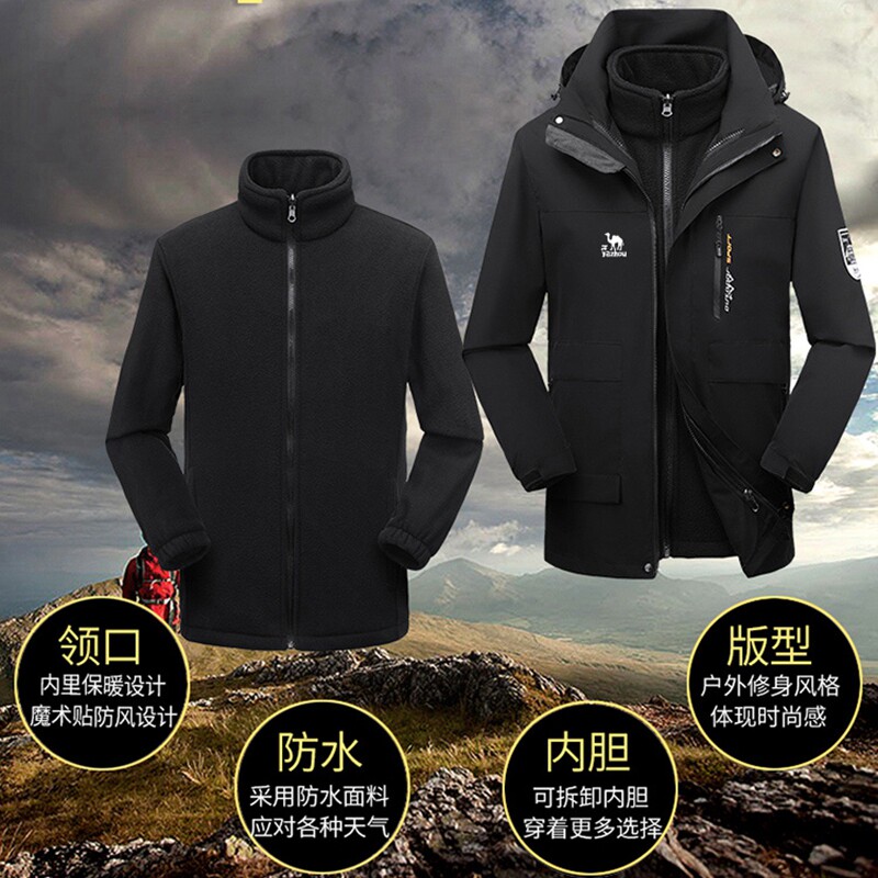 Outdoor submachine clothing men's winter three-in-one detachable thermal plus suede thickened lovers two sets of climbing boomer women