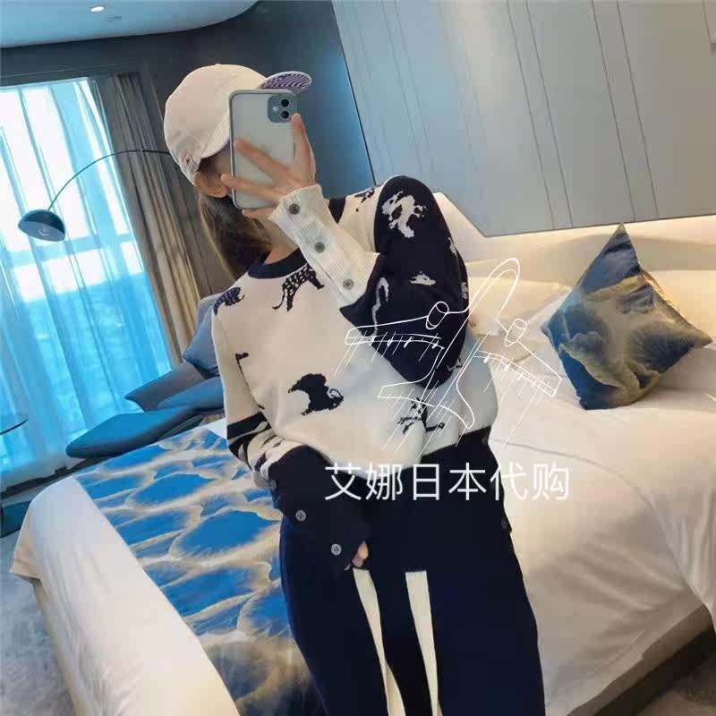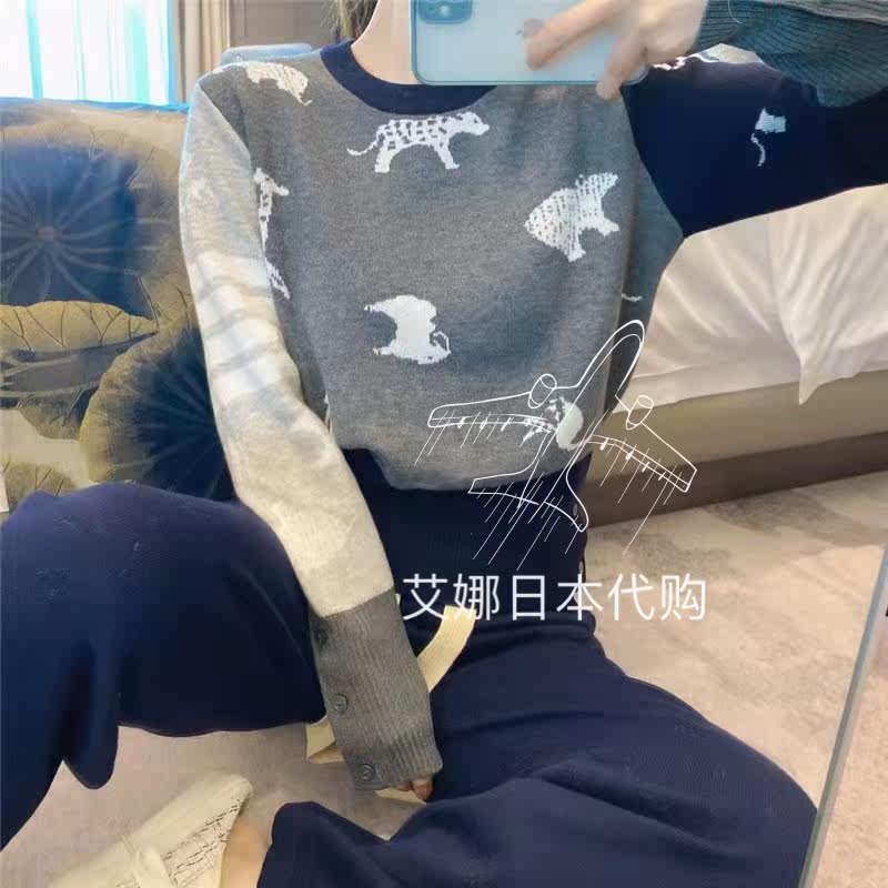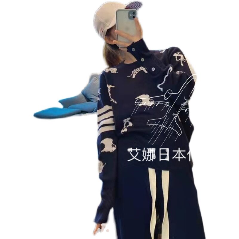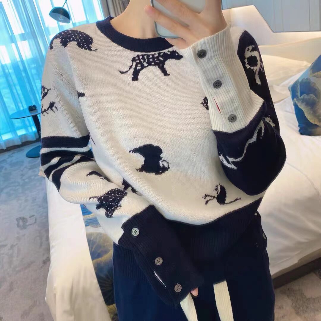 Thom Browne 21 autumn winter sweatshirt with feminine tb puppy jacquard wool knit cardiovert sweater blouse