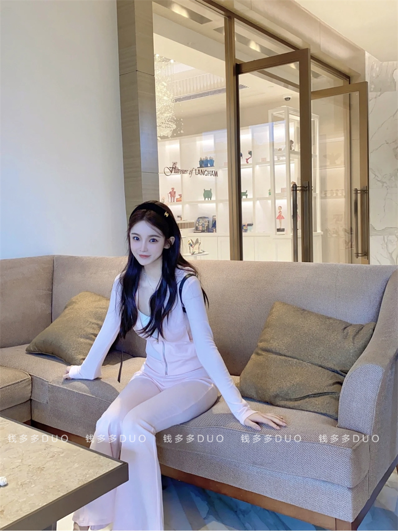 2021 Autumn Winter New Fashion Casual Sports Suit Woman with hat-laced jacket with high waist and wide leg trousers female
