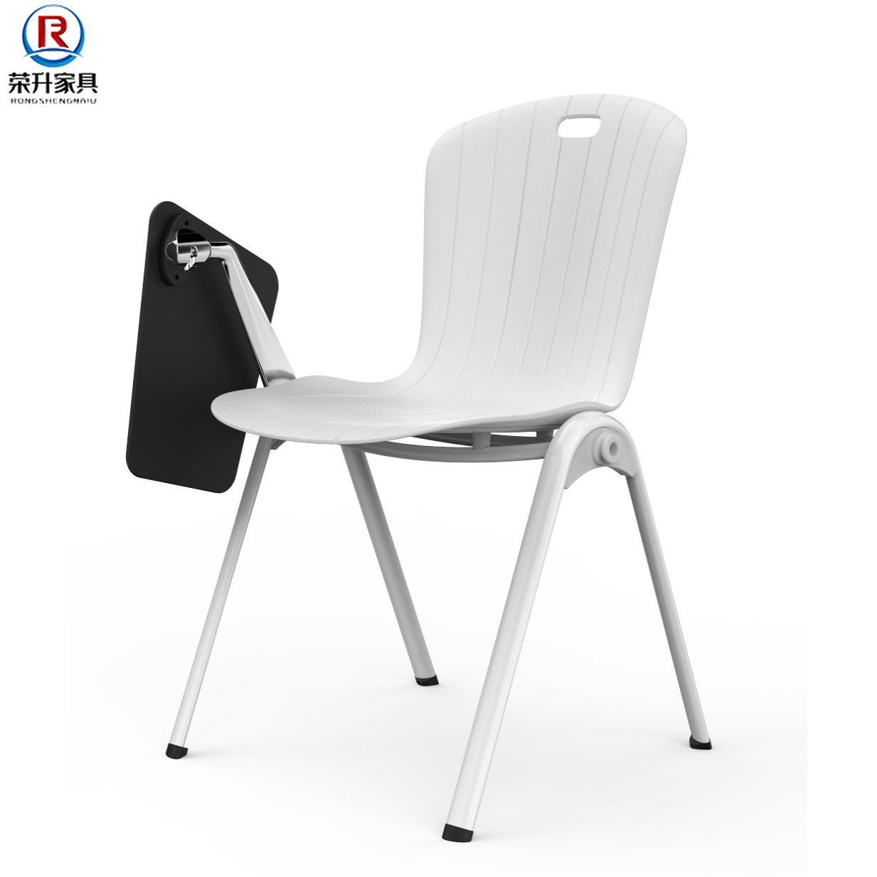 Plastic-steel chair with armrests black and white pure colour dining room chair can be connected to meeting chair creative shell textured design office chair
