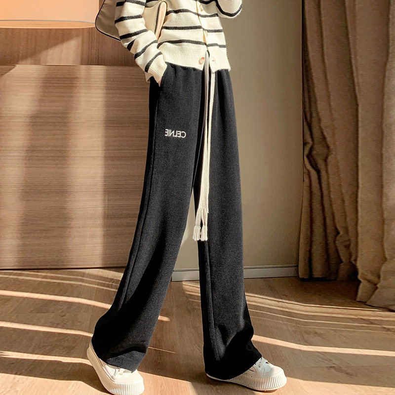 Pregnant Woman Broadlegged Pants Drawing Rope Straight Drum Pants Woman Autumn Winter Outwear Light Core Suede Easy care Winter Plus Suede Broadleg Long Pants