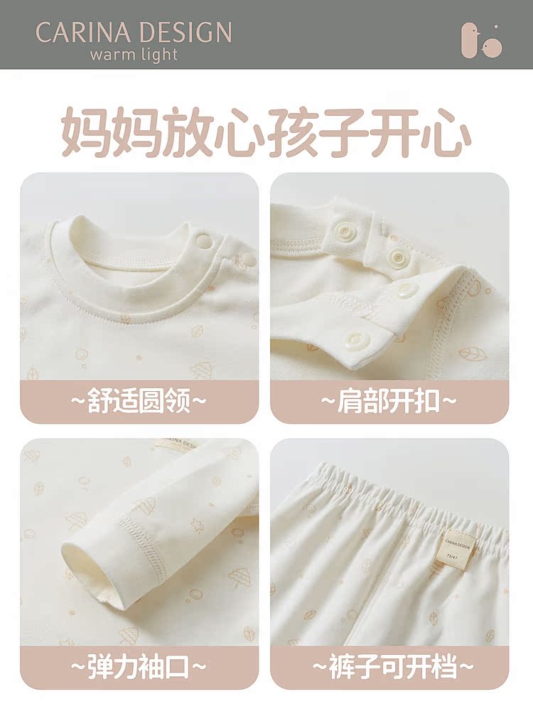 CARINADESIGN infant cotton underwear set baby color cotton autumn clothes long johns children's long-sleeved home service