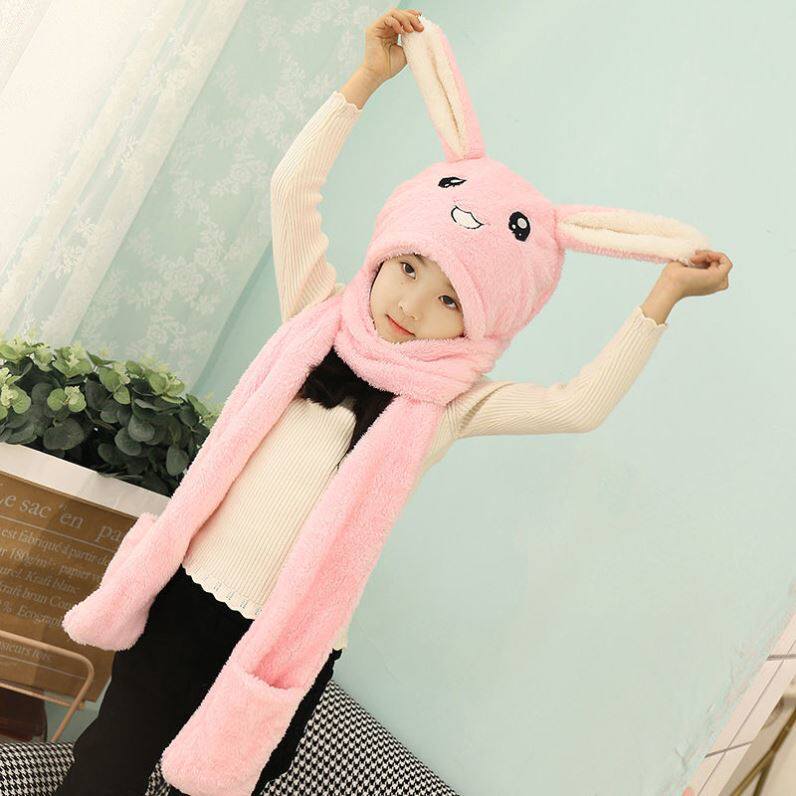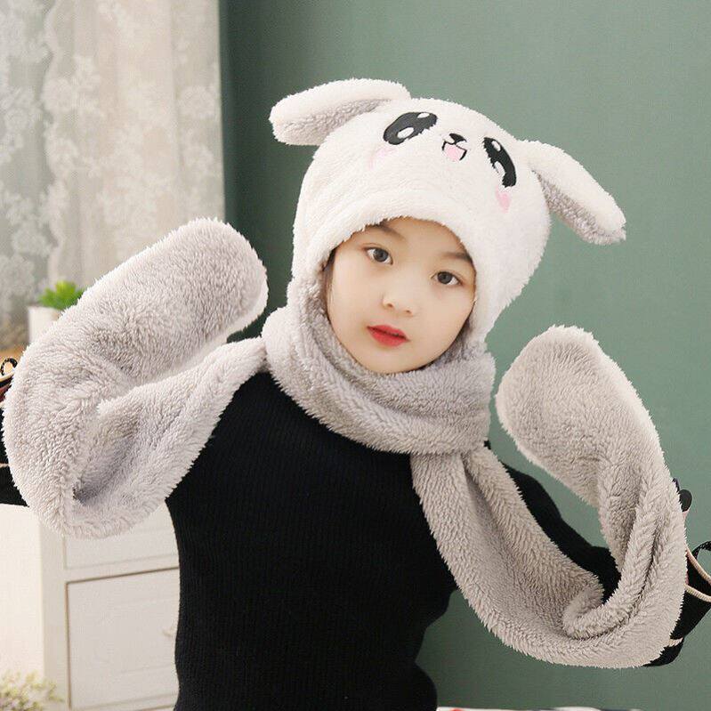 Autumn winter Children's hat scarf gloves Three sets of integrated protective ear will move the rabbit ear warm and thickened surrounding neck students