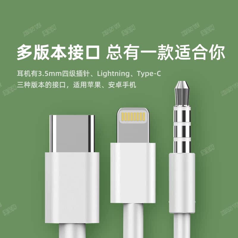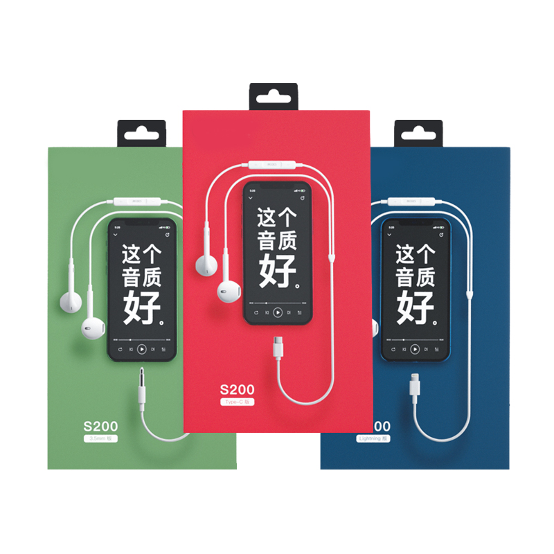 S200 cable wire control headphone stereo heavy bass Lightning Apple Type-c flat ear headphones half-in-ear