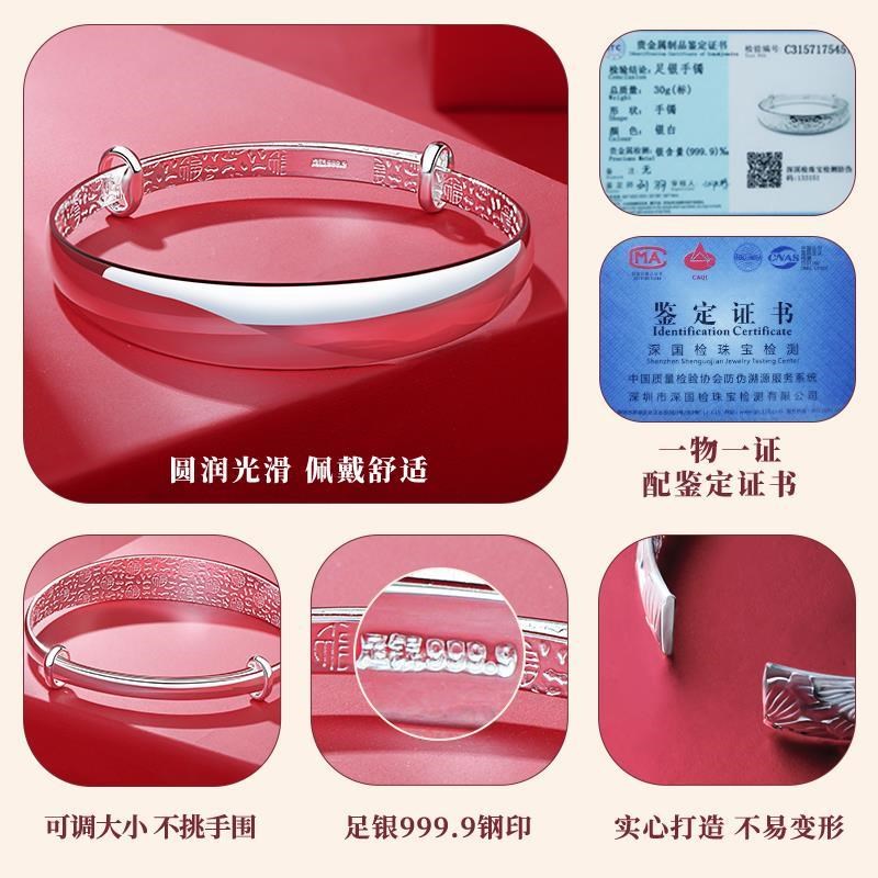 (9999 pure silver) glossy bracelet approx. 30 gr matching (9999 pure silver) Long Fengfu bracelet approx. 30 gr (9999 pure silver) Double fish sushi bracelet for about 33 gr fit (9999 pure silver)