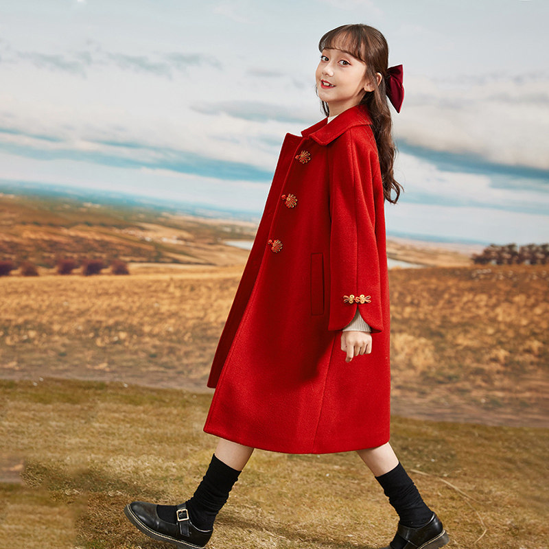 Girls' fur coats 2021 new thicken CUHK children's red child great clothes autumn and winter children's Chinese Wind Breeze Pie
