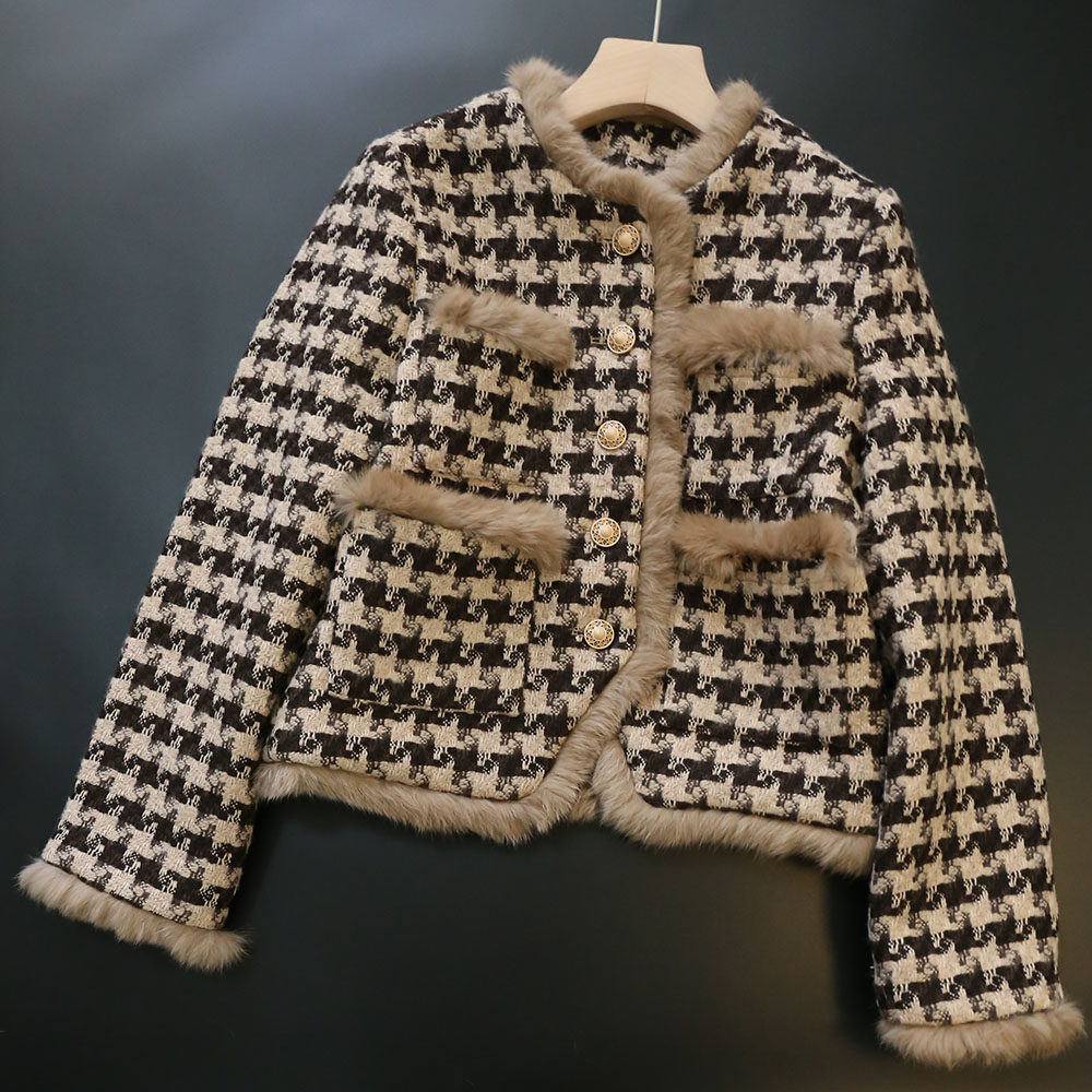 High - end luxury lady names small short - term plus - hair jacket a - word skirt suit female winter