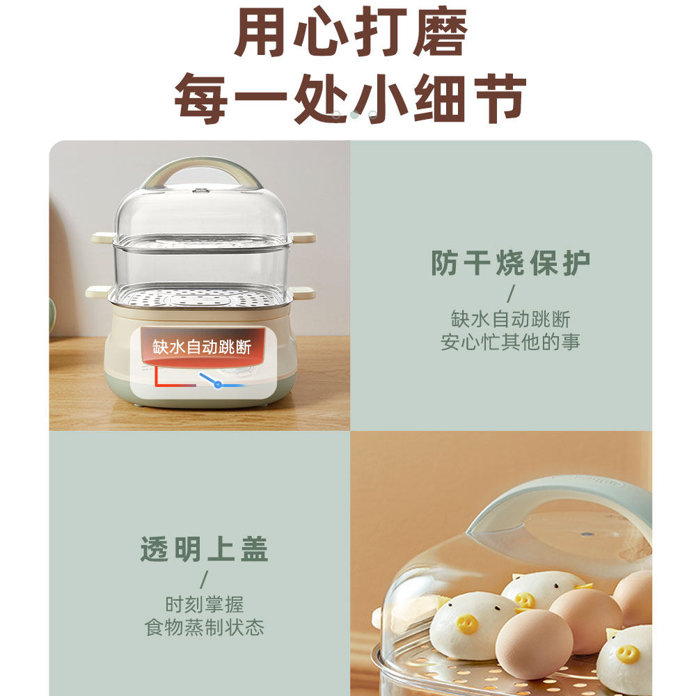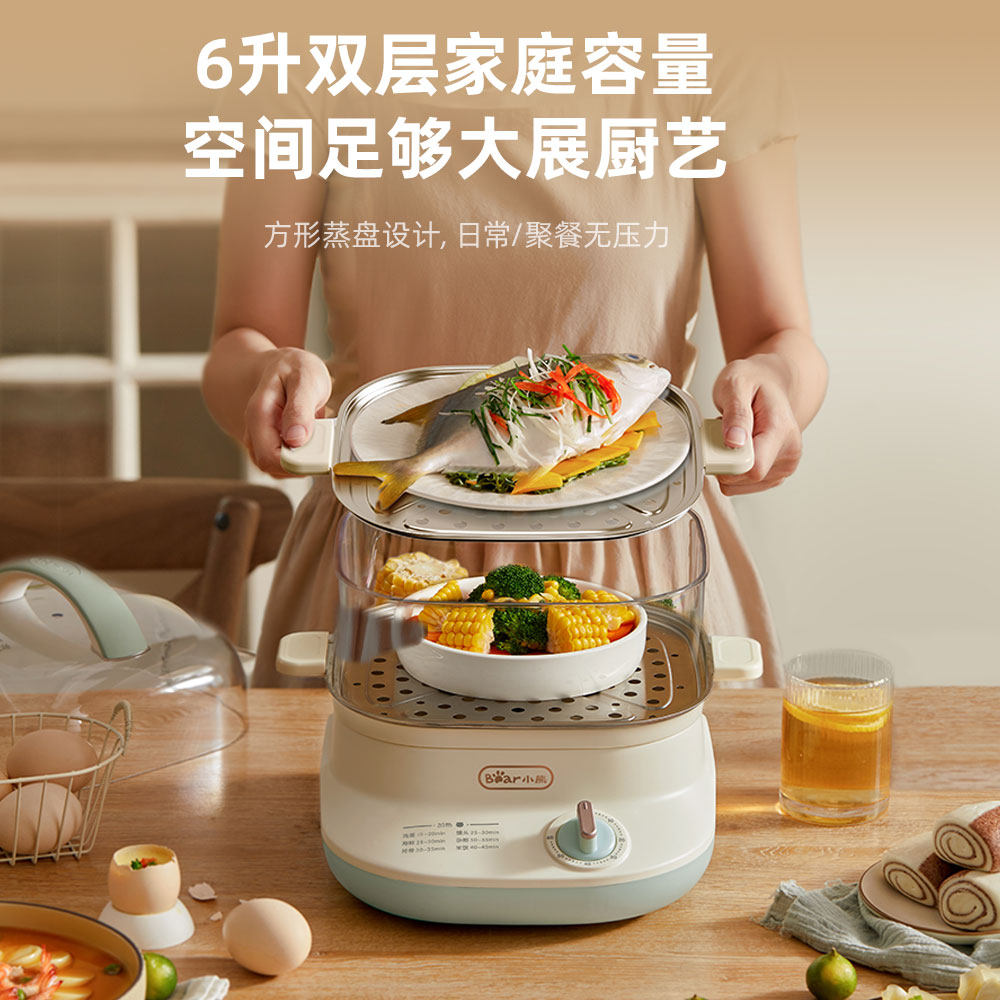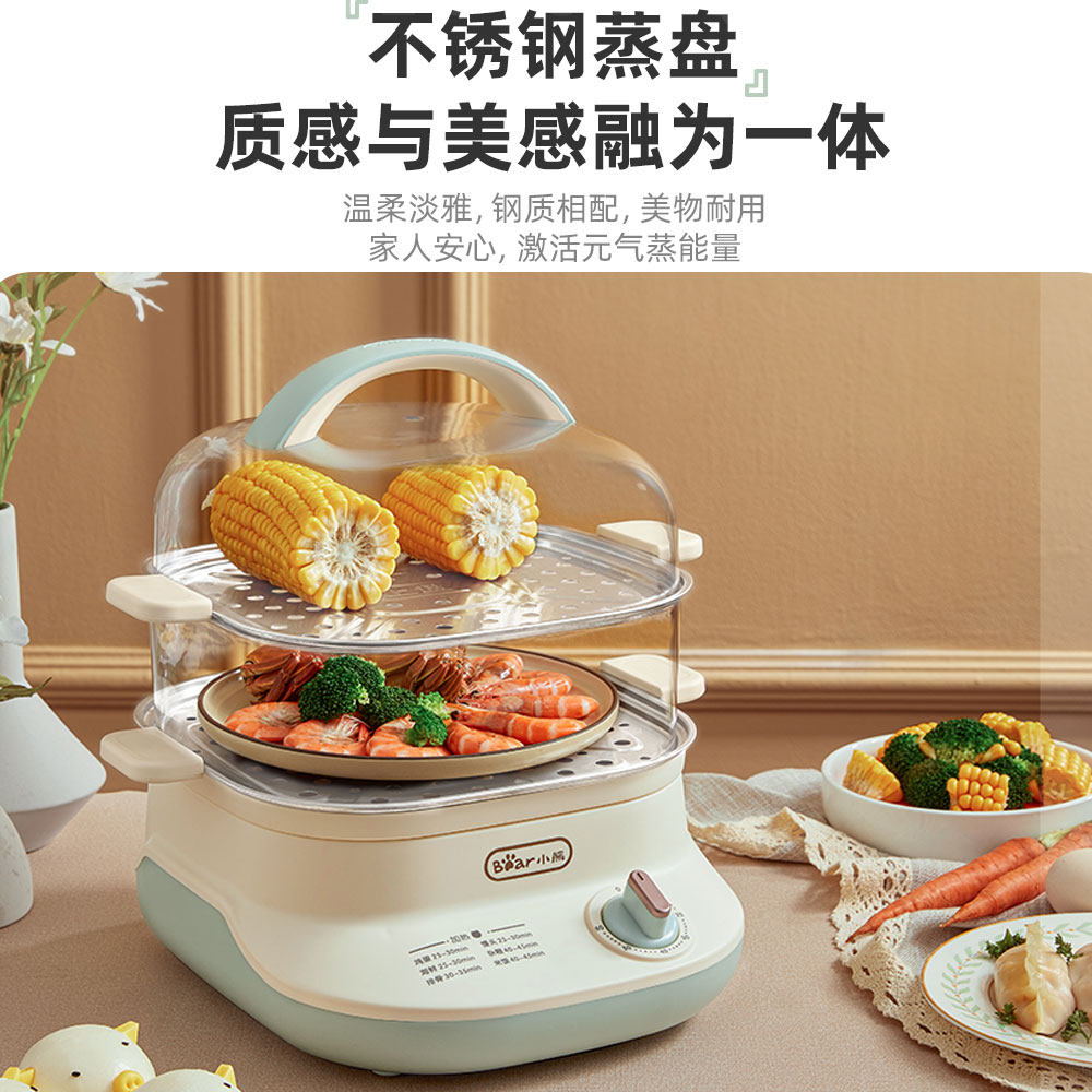 Small Bear Steam Boiler Home Small Double Multifunction Stainless Steel Electric Steam Boiler Automatic Power Cut of Timed Small Electric Steam Cage