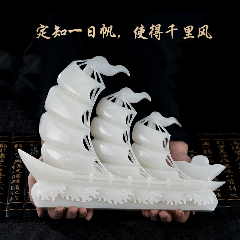 One Sail Smooth Natural Jade Dragon Boat Swing of the Dining Room Wine Cabinet Xuanguan Office Desktop Decorations Gifts