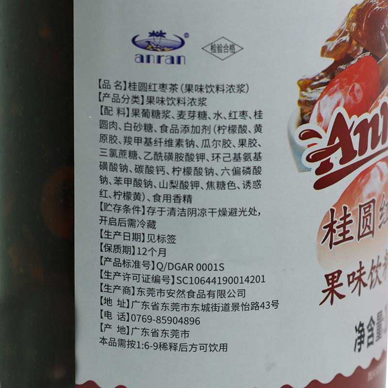 Anran longan red jujube tea sauce longan red jujube drink thick pulp containing pulp 1kg fruit tea juice drink hot drink