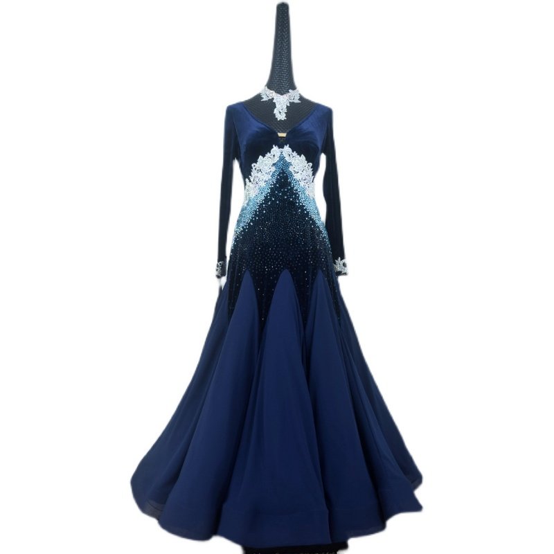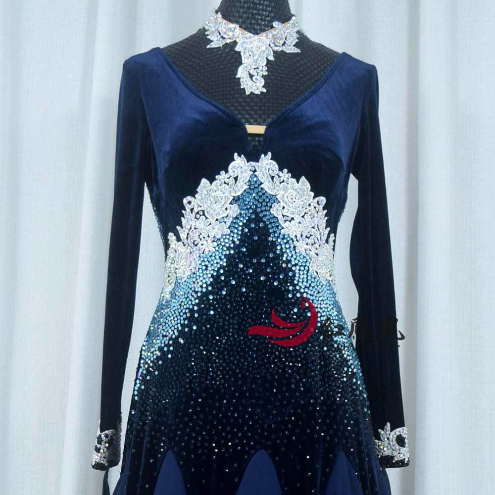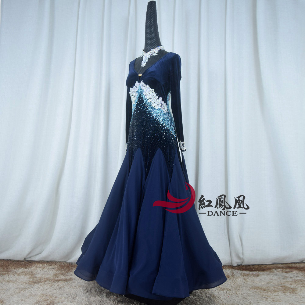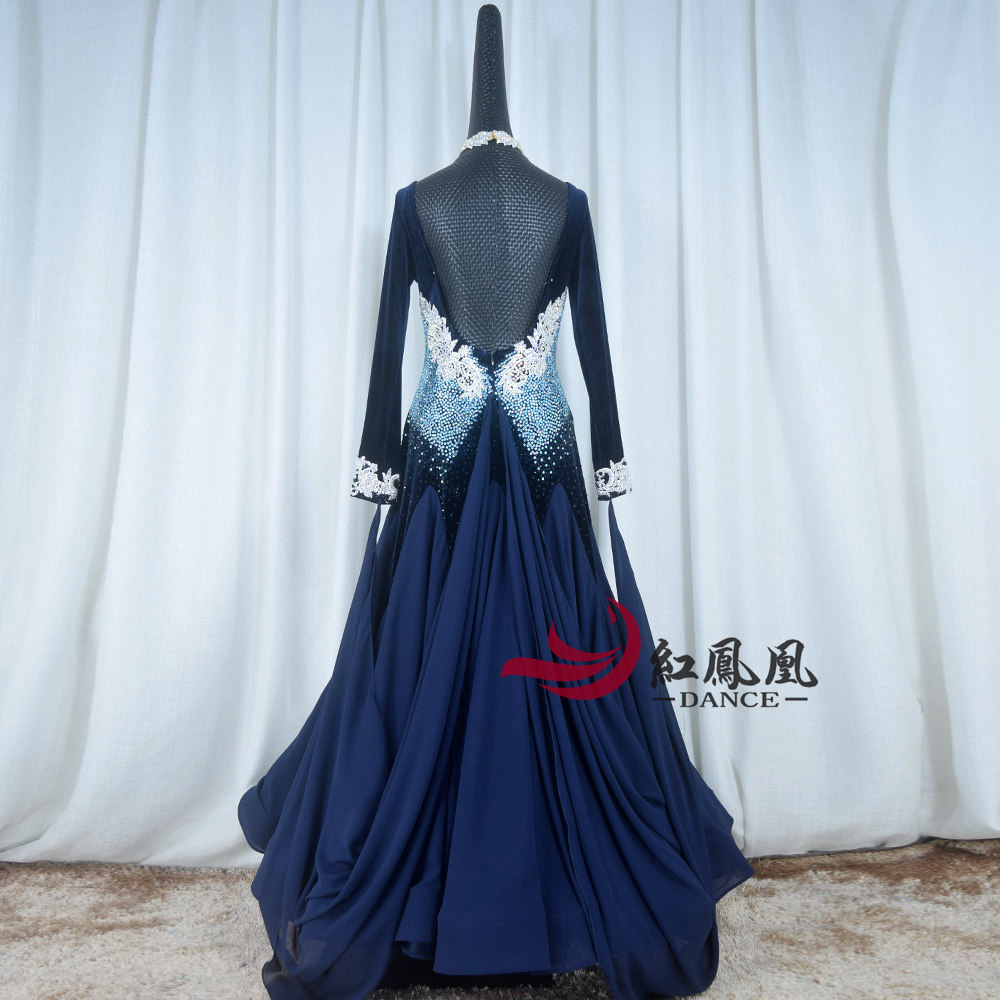 Red Phoenix New Velvet National Standard Waltz Square Dance Performance Wear Morden Race Dress Girl B996